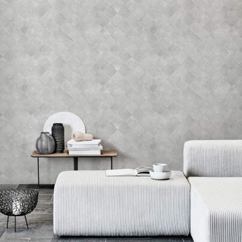 Modern abstract Living Room Wallpaper with Muted Stone Gray color. Makes a bold and artistic impression.