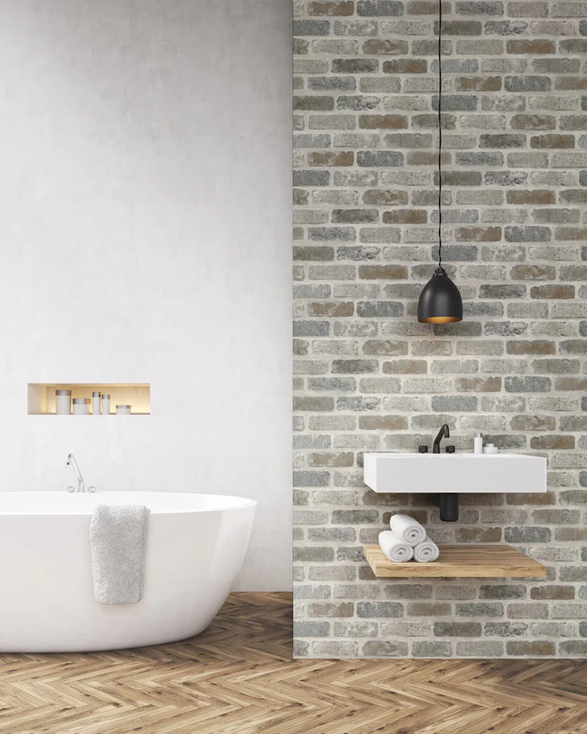 NextWall NW30500 Washed Brick Peel and Stick Wallpaper (Gray)
