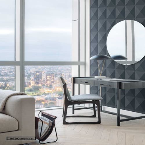 A Slate Steel Living Room Wallpaper with fine detailing. Adds a strong foundation to contemporary spaces.